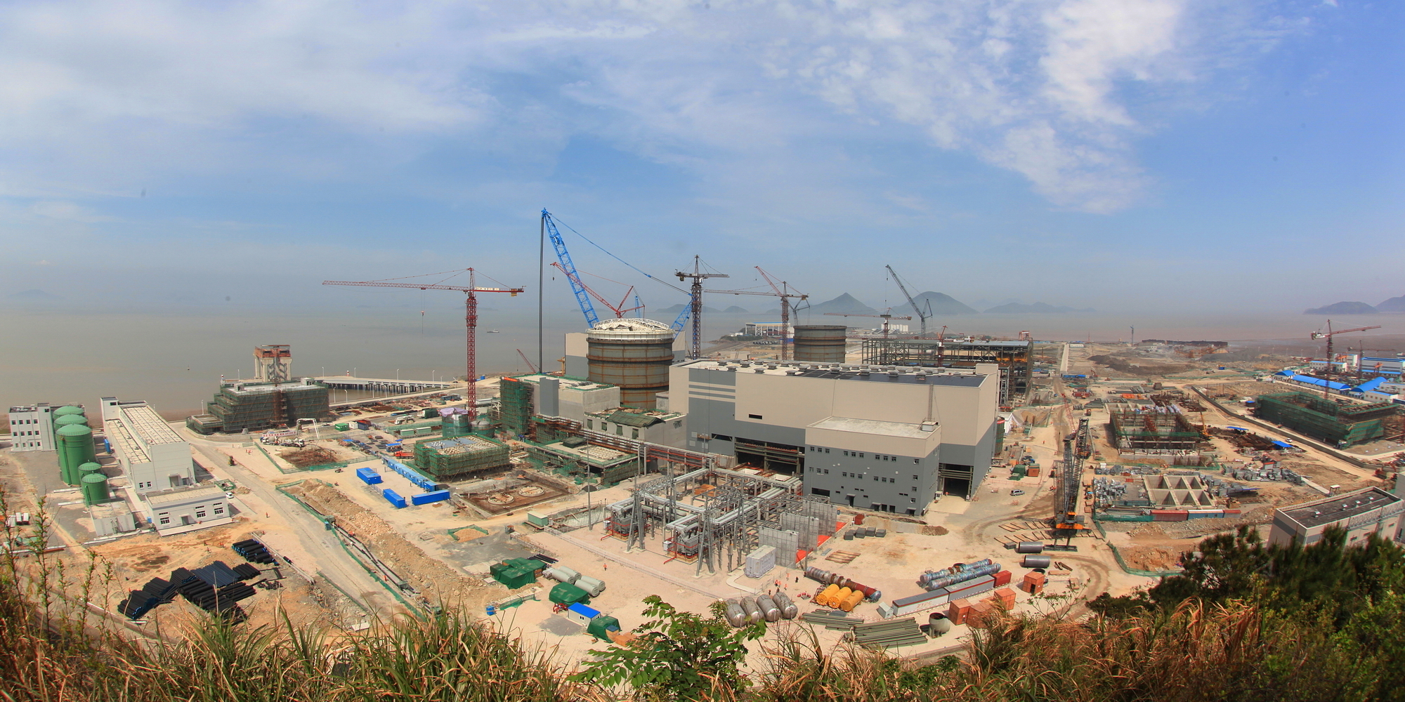 ????2011年底,我國在建核電機(jī)組26臺、2924萬千瓦,在建核電規(guī)模居世界第一。圖為2009年浙江三門開工建設(shè)世界上首臺三代AP1000核電機(jī)組。? |