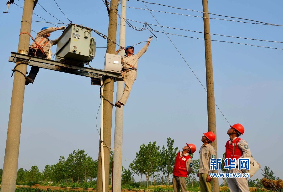 ????5月19日,江蘇省灌云縣供電公司的員工在田間檢修用電設(shè)施。 ????農(nóng)村“三夏”大忙即將展開,為確保夏收期間用電正常,江蘇省灌云縣供電公司成立20支助農(nóng)服務(wù)隊(duì),300余名供電員工提前進(jìn)村入戶為農(nóng)民檢修用電設(shè)施及農(nóng)用電器設(shè)備,及時(shí)消除隱患,為農(nóng)業(yè)生產(chǎn)安全放心用電提供保障。?新華社發(fā)(陳忠財(cái) 攝) |