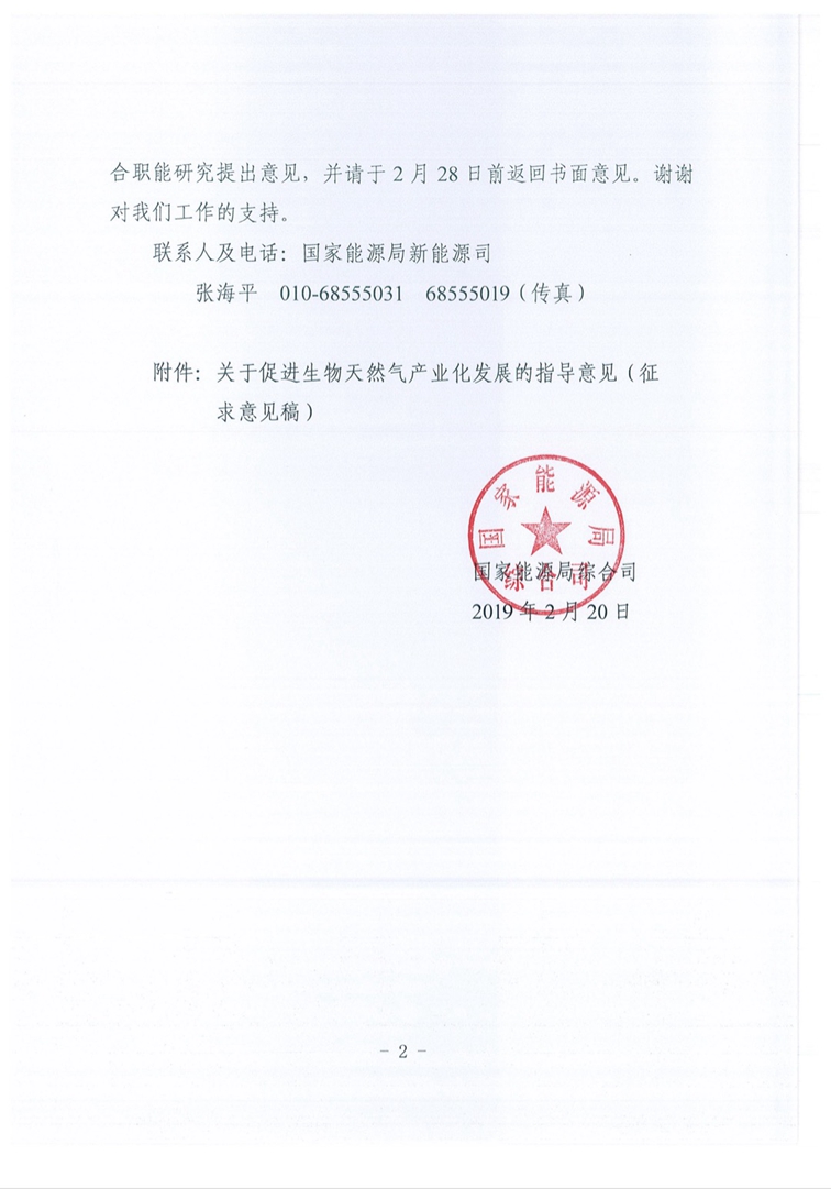 國(guó)家能源局綜合司關(guān)于征求對(duì)《關(guān)于促進(jìn)生物天然氣產(chǎn)業(yè)化發(fā)展的指導(dǎo)意見(jiàn)(征求意見(jiàn)稿)》意見(jiàn)的函