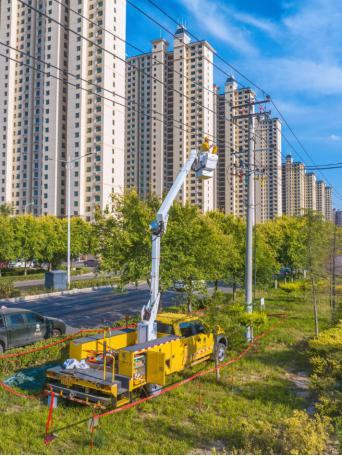 国网河北电力员工对10千伏冯方线开展带电作业,保障度夏期间电网安全稳定运行。